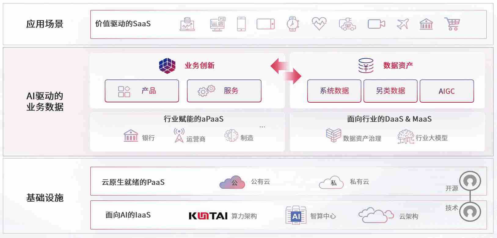 数字时代,,,,围绕企业数字化转型的关键要素,,z6mg·人生就是博数码开创性的提出数云融合战略和技术体系框架,,着力在云原生、、、数字原生、、AI原生和信创产业上架构产品和服务能力,,为处在不同数字化转型阶段的快消零售、、汽车、、金融、、、医疗、、、政企、、、、教育、、、、运营商等行业客户提供泛在的敏捷IT能力和融合的数据驱动能力,,,构建跨界融合创新的数字业务场景和新业务模式,,,助力企业级客户建立面向未来的核心能力和竞争优势,,,全面推动社会的数字化、、、智能化转型升级。。